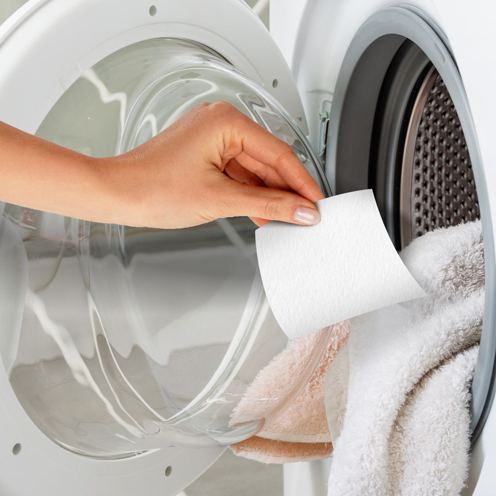 1. Placez une feuille de lessive avec votre linge dans la machine.